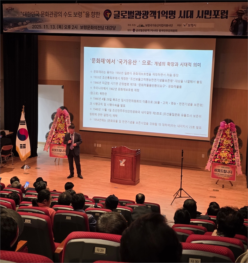 '대한민국 문화관광의 수도 보령'을 향한 도약과 '글로벌 관광객 1억 명 시대'를 준비하기 위한 시민포럼이 지난 11월 13일(목) 오후 2시 보령문화의전당 대강당에서 성황리에 개최됐다.